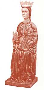 La fábula nos dice que unos labradores, o bañistas, ¿quién sabe?, la encontraron apoyada en la piedra que hay en medio del río. Sacáronla y la depositaron, con toda devoción, en el viejo templo parroquial, aquel que se edificó sobre la Mezquita a un lado de la plaza central del hisn Mulina mora, (nunca hins Mola) lugar desde donde la duma o reunión de ancianos, gobernaba la fortaleza. Mas, a la mañana siguiente cuando fueron a verla las buenas gentes de la villa se encontraron con que había desaparecido. Desconcertados volvieron al río, y en su ribera estaba la imagen.